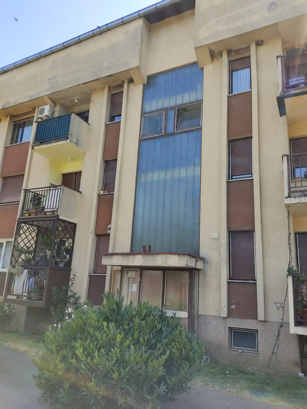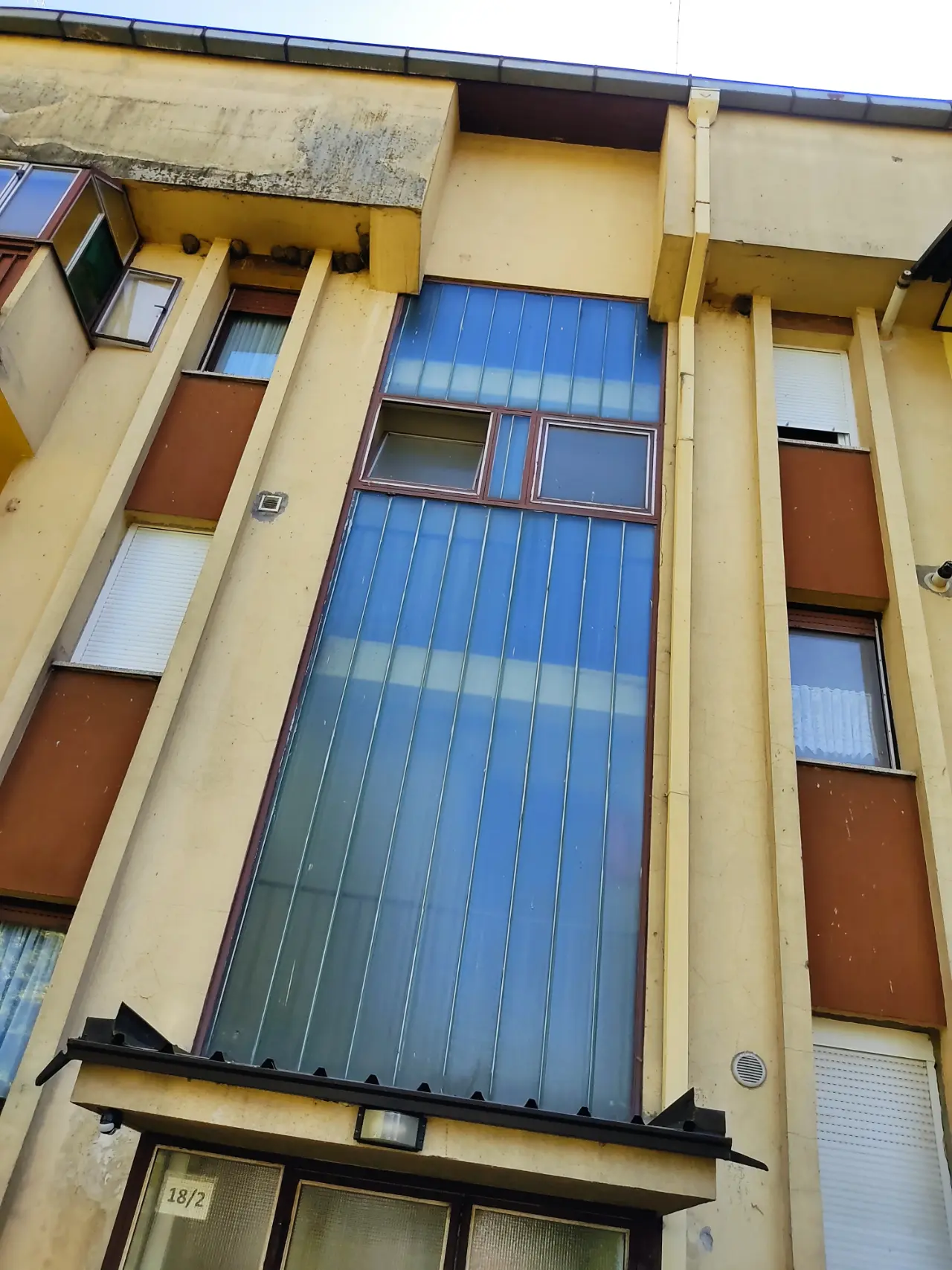 Višestambena zgrada na adresi Splitska 18 u Đakovu izgrađena je 1983. godine. Zgrada se sastoji od podruma, prizemlja, dva kata i potkrovlja. Nepravilnog je tlocrtnog oblika, izdužena u smjeru sjeverozapad-jugoistok. U zgradi se nalaze dva glavna ulaza koji su smješteni na sjeveroistočnoj strani pročelja.